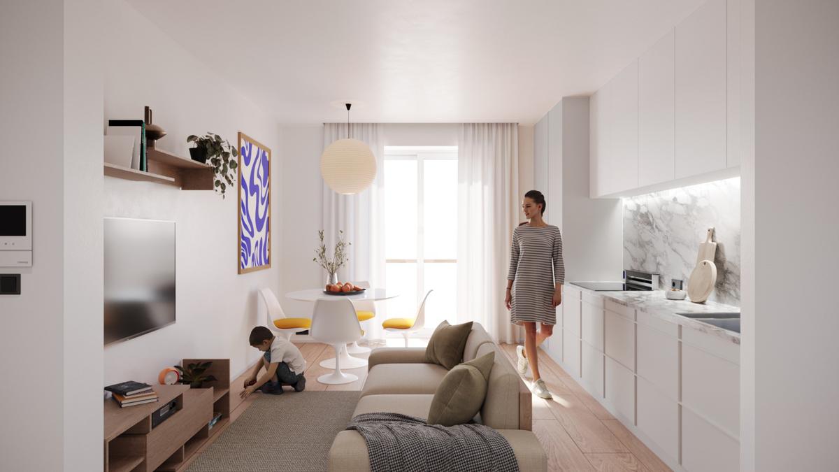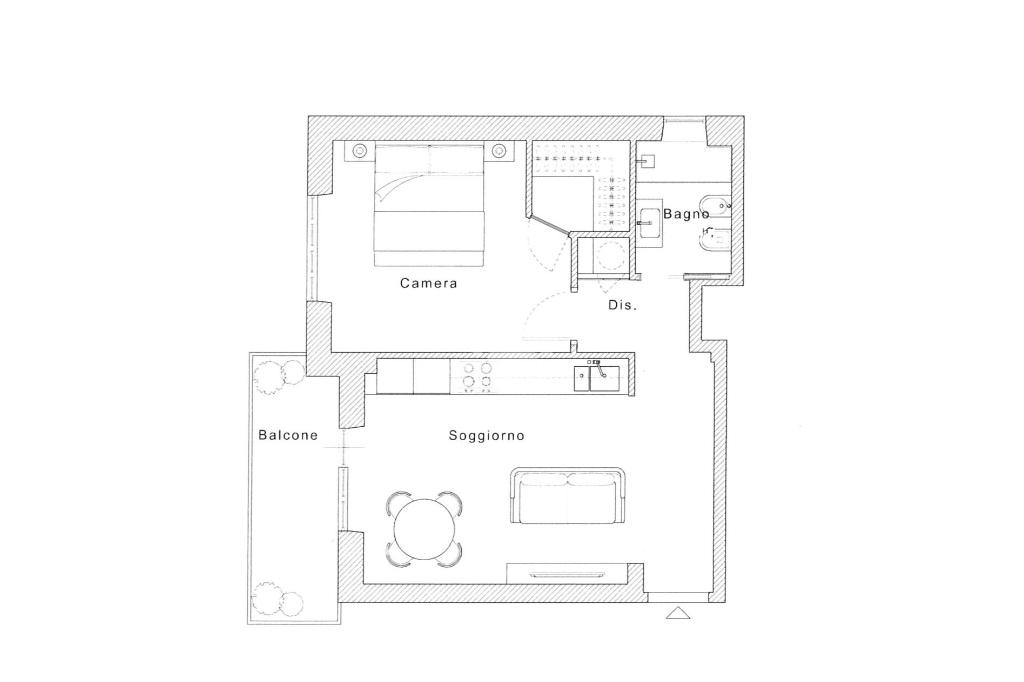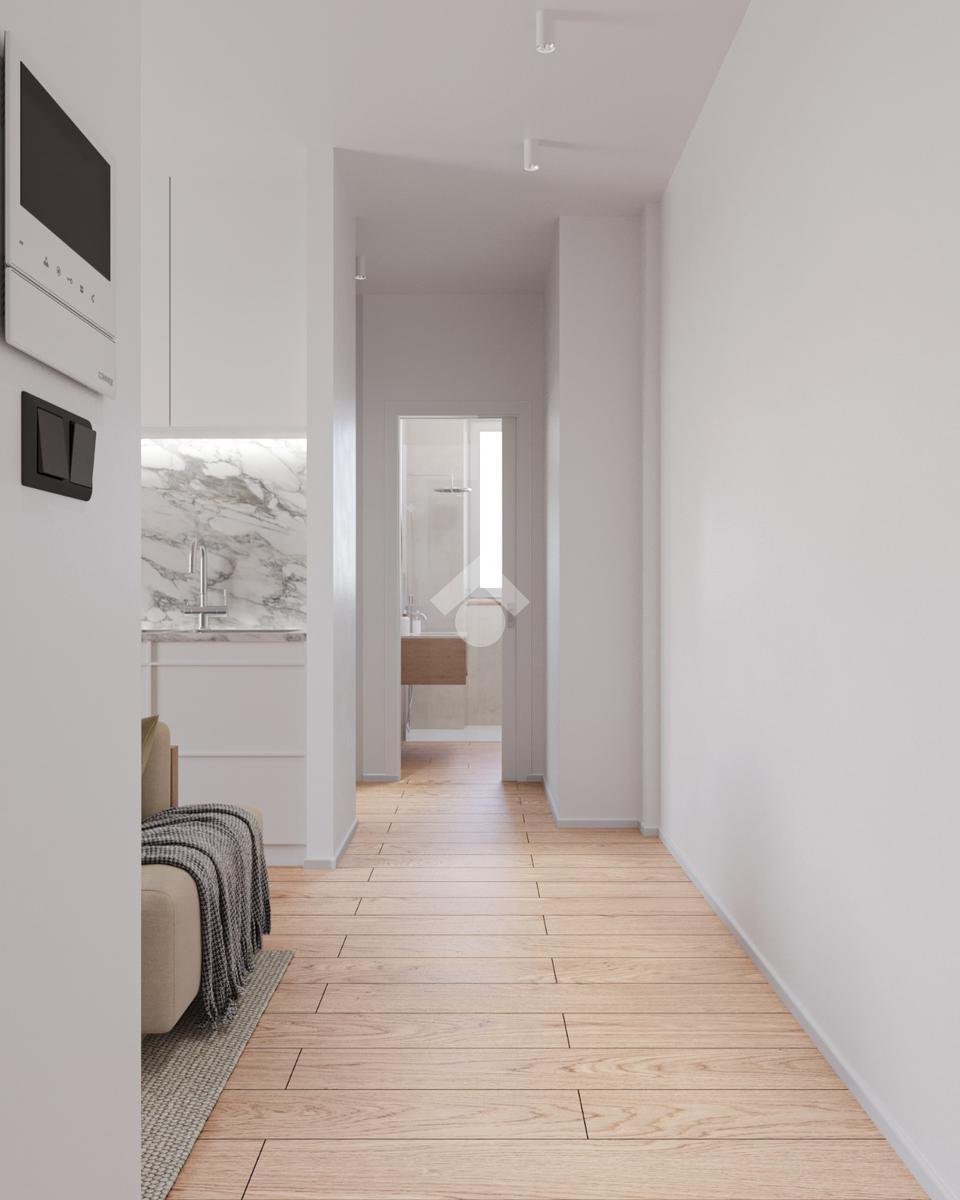 L'immobile è composto da soggiorno con angolo cottura, disimpegno, corridoio, locale lavanderia, camera da letto con cabina armadio con predisposizione del 2°bagno, bagno finestrato e balcone.